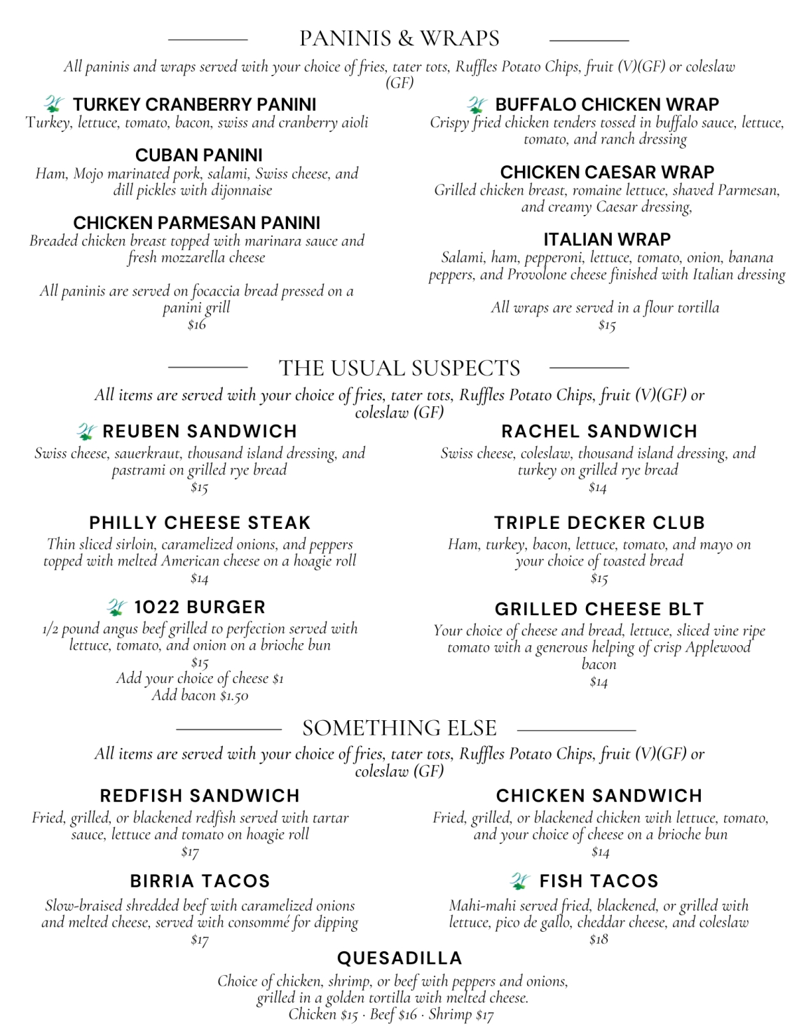 • Chef Specials offered daily