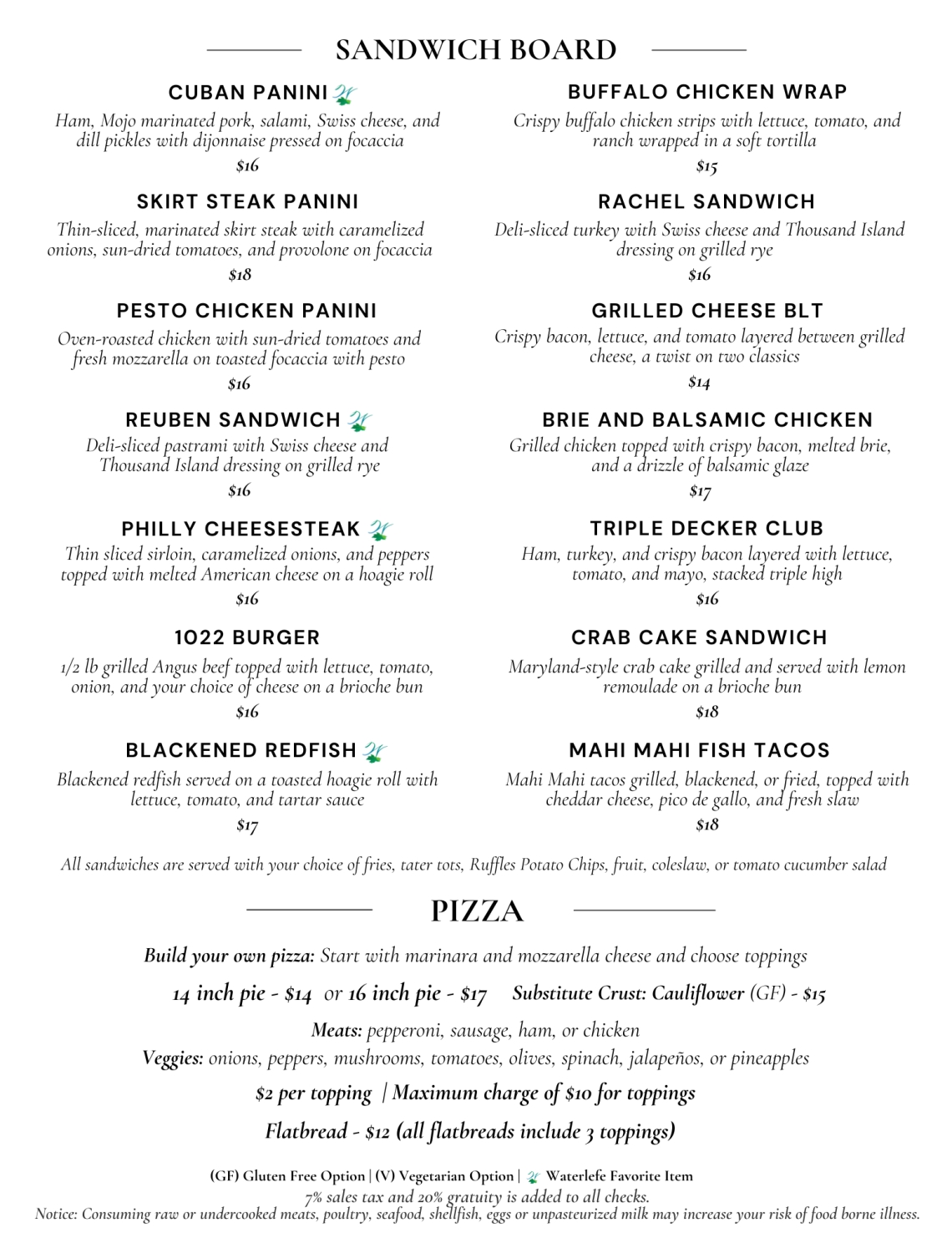 Lunch and Dinner Menu: